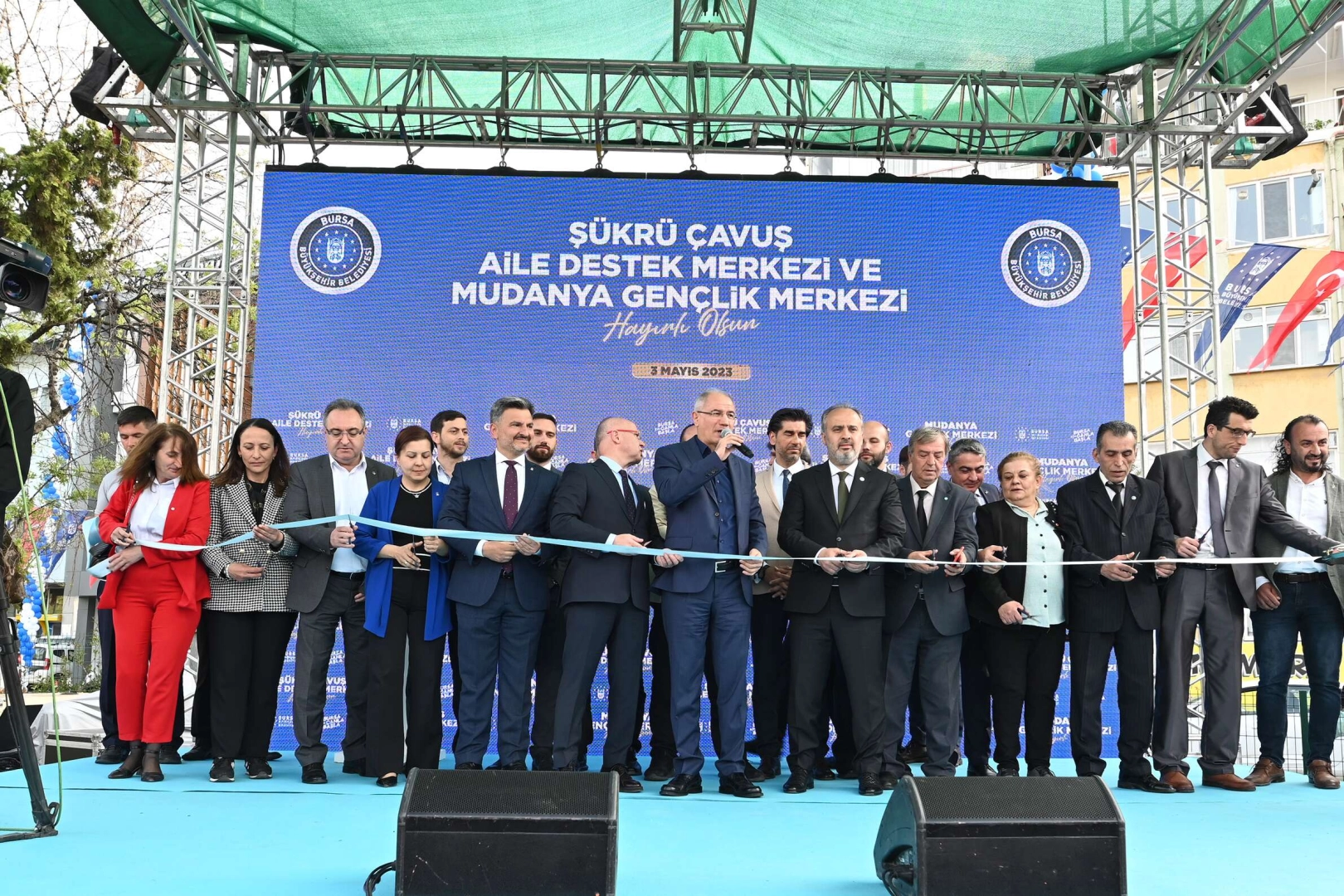 Gerek merkezi hükümet gerekse yerel yönetimler tarafından Bursa ve ilçelerine kazandırılan eserler üçer beşer hizmete açılıyor. İşte onlardan ikisi de Büyükşehir Belediyesi tarafından Mudanya’ya kazandırılan Şükrü Çavuş Aile Destek Merkezi ile Gençlik Merkezi. Mudanya’da düzenlenen törenle iki yatırımda hizmete açıldı. Törende konuşan AK Parti Dış İlişkilerden Sorumlu Genel Başkan Yardımcısı ve Bursa Milletvekili Efkan Ala, hedeflerinin Türkiye’nin en kalkınmış 10 ülke arasına girmesi olduğunu söyledi.