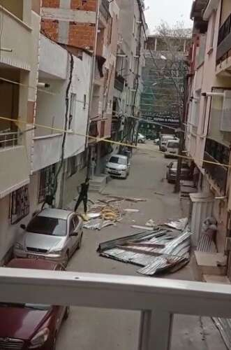 Saatteki hızı 80 kilometreyi bulan lodos çatıları uçurdu, ağaç ve direkleri devirdi