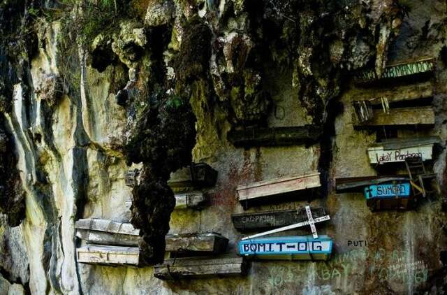Burayı, Filipinler'deki Luzon Adası'nın küçük Sagada Köyü'nde bulabilirsiniz. Muhtemelen ülkenin en korkunç yerlerinden biri olan asma tabutlar eski ve ilginç bir cenaze töreninin kanıtı olabilir. Tabutlar uçurumun kenarındaki bir kayalıkta asılı duruyor.