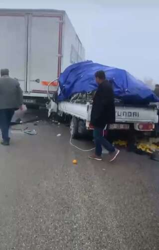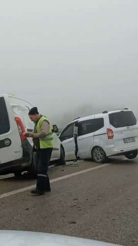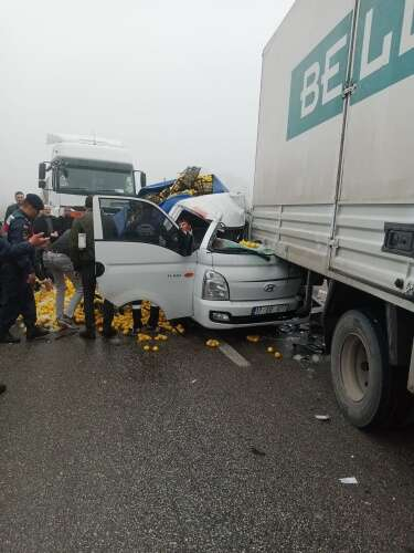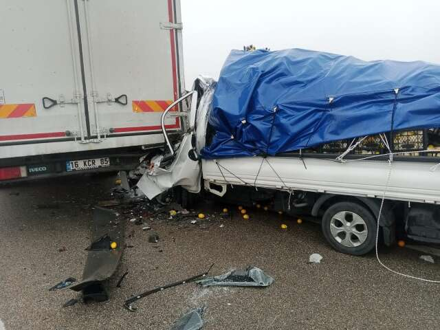 Bursa İzmir yolunda sis sebebiyle zincirleme kaza....Çok sayıda araç birbirine girdi