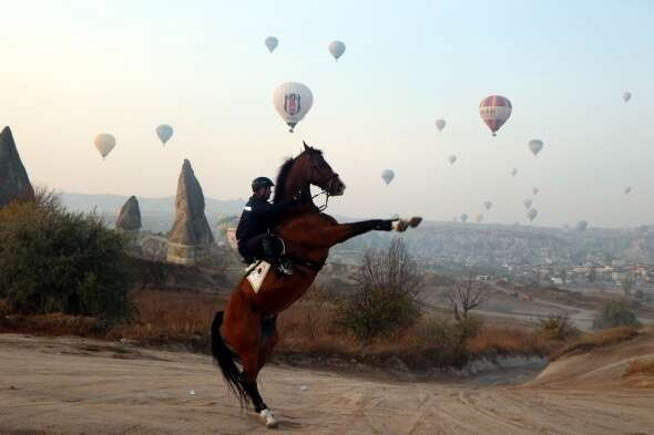 Nevşehir Jandarma At Köpek Eğitim Merkezi (JAKEM) Komutanlığına bağlı atlı birlikler ise sabahın erken saatlerinde yerli ve yabancı turistlerin güvenliği için devriye gezmesi dikkatlerden kaçmazken atlı birliklere turistlerin büyük ilgi göstermesi dikkatlerden kaçmadı.