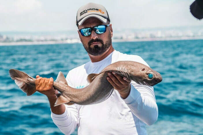Yeni Zelanda’nın doğu kıyısında 2021 yılında biyolüminesans olarak adlandırılan, kimyasal enerjinin ışık enerjisine dönüştürülmesiyle etrafa ışık yayma yeteneği keşfedilen küt burunlu köpek balığı cinsi, Antalya açıklarında sportif balıkçılık yapan Savaş Dursun’un oltasına takıldı.