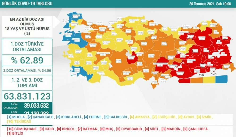Toplam uygulanan doz miktarı ise 63 milyon 831 bin 123 oldu.