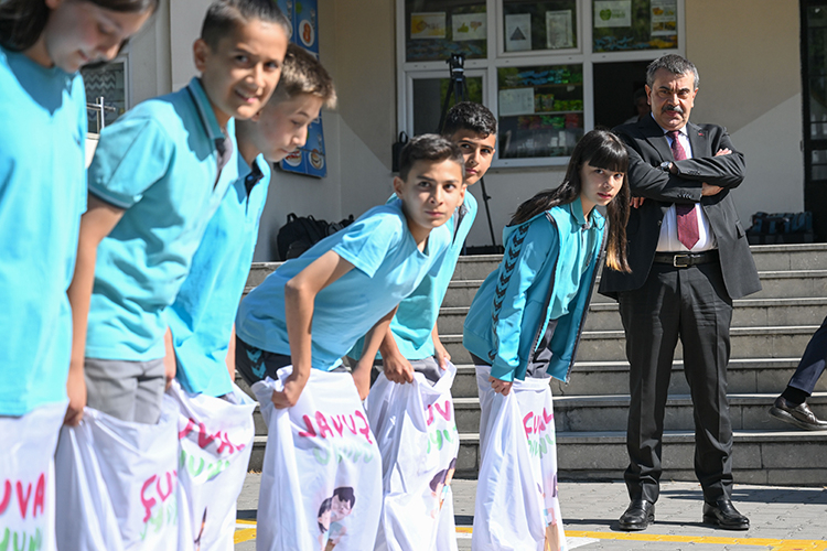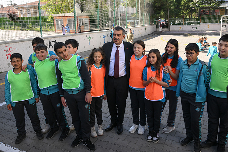 "Biz bütün bu parametreleri bir araya toplayarak Temmuz 2023'teki genelgemizle bir hususu ifade ettik. Dedik ki 'okul bahçelerimizi bu anlamda yeniden şenlikli, çocuklarımızın cıvıl cıvıl oyun oynadıkları alanlara dönüştürmemiz lazım'. Bunu yaptığımızda çocuklarımızın gündelik hayatta, gün içerisindeki aktivite oranını arttırmış olacağız. Günlük attığı adım sayısını birkaç kata katlamış olacağız. Bunu hayata geçirebilmemiz için çocuklarımızı tekrar okul bahçelerine çıkarabilmemiz için okul bahçelerinde belli fiziki altyapıları sağlamak gerekir dedik ve imkanı olan okullarımızın hem spor alanlarını hem de bahçelerini tartan pistte geleneksel oyunlarımızın oynanabileceği zeminler haline dönüştürmeye çaba sarf ettik. Buna rağmen çocuklarımız bahçeye çıkmazlarsa diye bir endişeden hareketle, çocuklarımızın okul içerisinde teneffüste vakit geçirmelerini belki engelleyecek, hem de akademik eğitimlerine destek verecek bir adım daha attık ve cep telefonlarının okul içerisinde kullanılmasını yasakladık. Bunların hepsi birbirini tamamlayan hususlar. Bütün bunlarla beraber daha sağlıklı nesiller, daha sağlıklı kuşaklar yetiştirmek için adım attığımızı düşünüyorum."