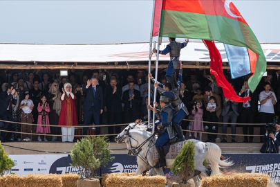 Festival alanında yöresel oyunları da izleyen Erdoğan, Karabağ'dan gelen ekibin akrobatik at gösterisi sırasında Türk ve Azerbaycan bayrağını açtığı anları ayakta alkışladı.