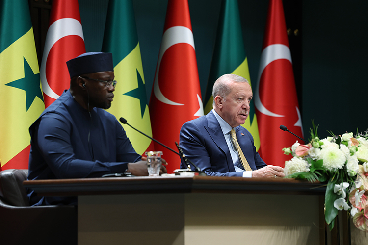 Erdoğan, Cumhurbaşkanlığı Külliyesi'nde baş başa ve heyetler arası görüşmeler ile ikili anlaşmaların imzalanmasının ardından Senegal Başbakanı Ousmane Sonko ile ortak basın toplantısı düzenledi.