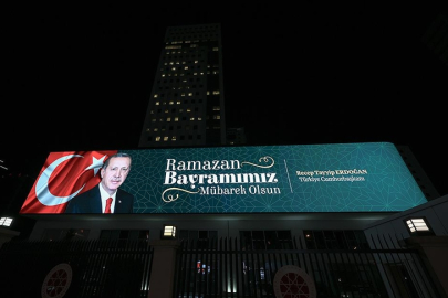 Cumhurbaşkanlığı İletişim Başkanlığının dijital ekranında, Cumhurbaşkanı Recep Tayyip Erdoğan'ın Ramazan Bayramı mesajı yayınlandı.