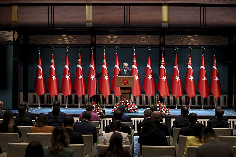 Cumhurbaşkanı Recep Tayyip Erdoğan, Cumhurbaşkanlığı Külliyesi'ndeki Kabine Toplantısı'nın ardından millete seslendi. Erdoğan, son Kabine Toplantısı'ndan bu yana geçen üç haftalık sürede, ülke ve millet için eser ve hizmet üretmeye devam ettiklerini belirtti. Yeni eğitim öğretim yılı açılışını, İstanbul Sancaktepe'de öğretmenler, öğrenciler ve velililerle gerçekleştirdiklerini dile getiren Erdoğan, bu vesileyle eğitimde 20 yılda ülkeye kazandırdıkları hizmetleri tekrar hatırlama imkanı bulduklarını söyledi. Bugünün ve geleceğin dünyasına dair kısa bir ufuk turu yaptıkları gençlerle "oku, düşün, uygula, neticelendir" prensiplerini bir kez daha paylaştıklarını ifade eden Erdoğan, öğretmen atamalarından derslik sayısına, altyapıdan teknolojiye kadar eğitimdeki önceliklerinin neticelerini görmekten büyük memnuniyet duyduğunu kaydetti.