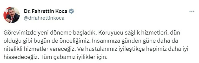 Öte yandan sosyal medya hesabından bir paylaşım yapan Koca, şu ifadeleri kullandı: