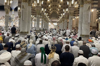Mobil uygulama üzerinden randevu alıp girebildiği, İslam Peygamberi'nin kabriyle minberi arasındaki Ravza-i Mutahhara'da namaz kılıp dua ediyor.