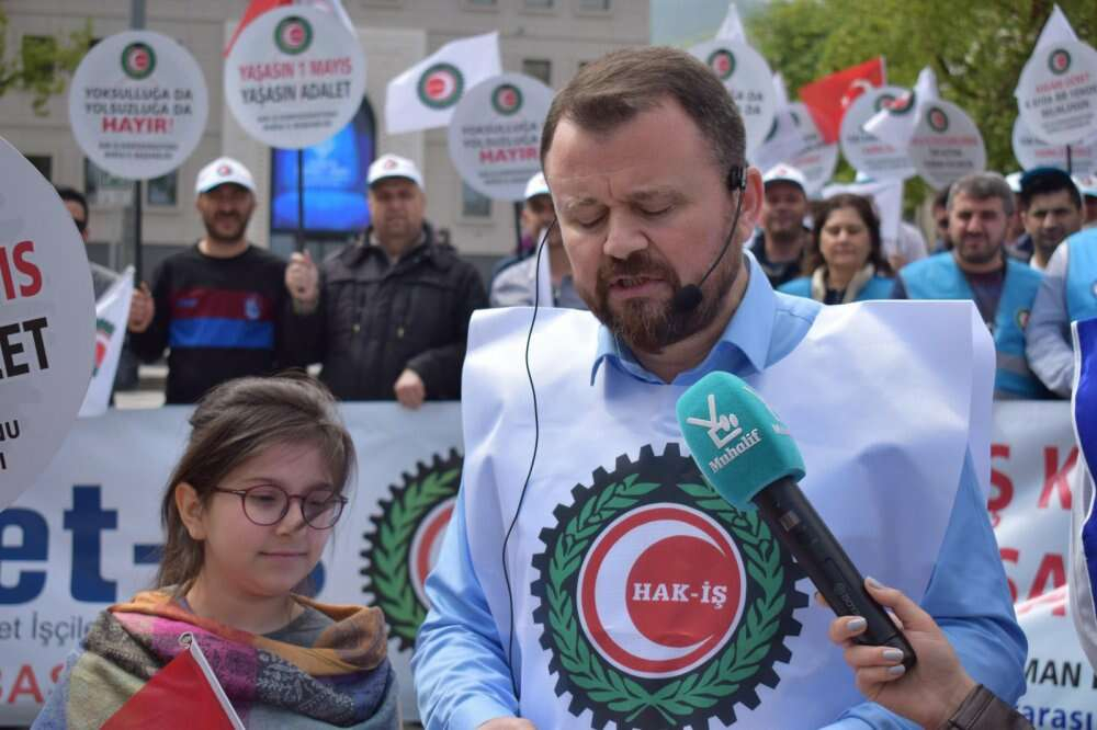 Hak İşçi Sendikaları Konfederasyonu (HAK-İŞ) Bursa Şubesi Başkanı Mustafa Yavuz, 1 Mayıs Emek ve Dayanışma günü dolayısıyla hazırlanan bildiriyi okudu.