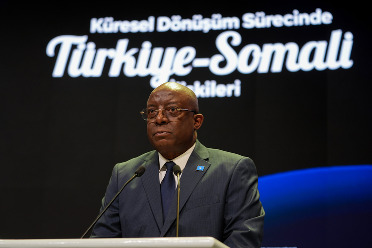 Somali Limanlar ve Deniz Ulaştırma Bakanı Abdülkadir Muhammed Nur ile Somali Enformasyon, Kültür ve Turizm Bakanı Daud Aweis Jama, Cumhurbaşkanlığı İletişim Başkanlığınca düzenlenen "Küresel Dönüşüm Sürecinde Türkiye-Somali İlişkileri" başlıklı panel öncesinde açılış konuşmalarını yaptı.