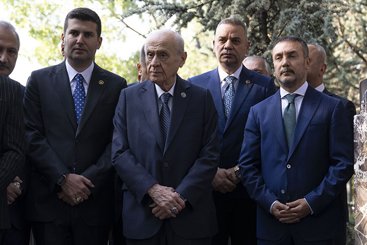 Bahçeli, bayram namazının ardından MHP'nin kurucu Genel Başkanı Alparslan Türkeş'in Beştepe'deki anıt mezarını ziyaret etti.