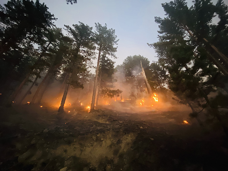 Gece boyunca karadan arazöz ve iş makineleri ile müdahaleye sabah saatlerinde havalanan çok sayıda helikopter ve uçak da destek veriyor.