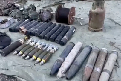 "6 çok namlulu roketatar mühimmatı, 8 tuzaklanmış havan mühimmatı, havan mühimmatına ait 12 taşıma kapsülü, 1 kutu makineli tüfek mühimmatı, çok miktarda yaşam malzemesi ve ekipmanı ile temizlik malzemesi."