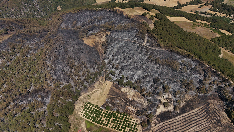 "Traktörle baktım ama 'Bizim tarafa gelmez.' dedik. Hava sisli ve kül yağıyordu. Diğer köylerden haber alıyorduk yangınla ilgili ama ben hiç imkan vermiyordum bize geleceğini. Hayvanları kamyonete yükledik. Bir tane hayvanım kaçmıştı, o yanmış, tavuklar yanmış. Buradaki 3 ev hariç diğerleri yanmış. Rüzgar vardı, ben dağda koyunları gezdiriyordum. 10 dakikada köye geldik ama yangın da arkamızdan geldi."