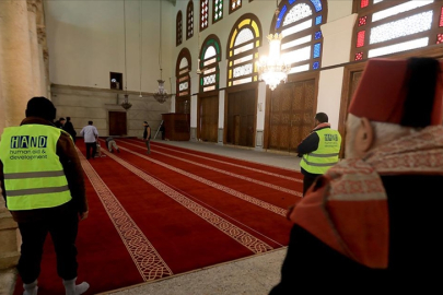 Suriye'nin başkenti Şam'daki Emevi Camisi'nin ibadete açılan bölümünde bulunan halılar, Gaziantep'in usta zanaatkarları tarafından özenle dokunan halılarla değiştirildi.