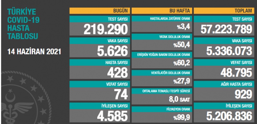 VAKA SAYISI 5 BİN 626Bakanlığın paylaştığı tabloya göre bugün yapılan testler sonucu 5 bin 626 yeni vaka tespit edildi.