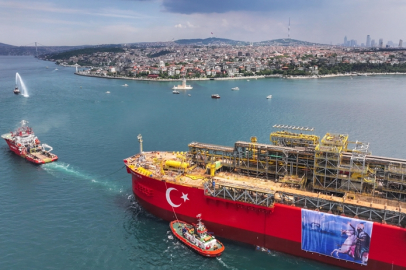 İstanbul Boğazı'ndan geçişini sürdüren Türkiye'nin ilk yüzer doğal gaz üretim platformu (FPU) Osman Gazi'ye, 9 kılavuz kaptan ile Nene Hatun Acil Müdahale Gemisi, römorkörler ve can kurtarma botu eşlik ediyor.