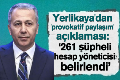 Yerlikaya'dan 'provokatif paylaşım' açıklaması: ‘261 şüpheli hesap yöneticisi belirlendi’