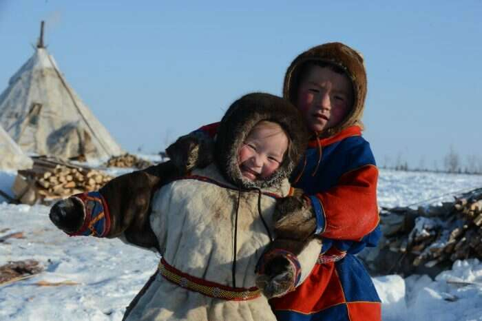 Dondurucu soğuktan korunmak için ren geyiklerinden elde ettikleri kürklerden kıyafetler yapıyorlar. Çiğ et yemeyi alışkanlık haline getiren bu halk, ne kadar zor şartlara göğüs geriyor olsalar da doğal hayatlarını terk etmek istemiyorlar. Yamal Yarımadası ve bazı komşu bölgelerle oluşan bir özerk okrug olarak Rusya Federasyonu'na bağlı bir federal bölgesidir. (CNN)