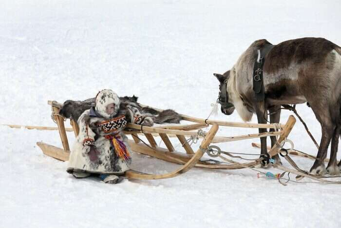 Dondurucu soğuktan korunmak için ren geyiklerinden elde ettikleri kürklerden kıyafetler yapıyorlar.