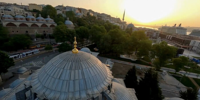 Fatih Sultan Mehmet'in 21 Nisan'ı 22 Nisan'a bağlayan gece 72 parça kadırgayı karadan yürütülerek Haliç'e indirdiği güzergah ise drone ile görüntülenirken tarihi bir kez daha gözler önüne seriyor.