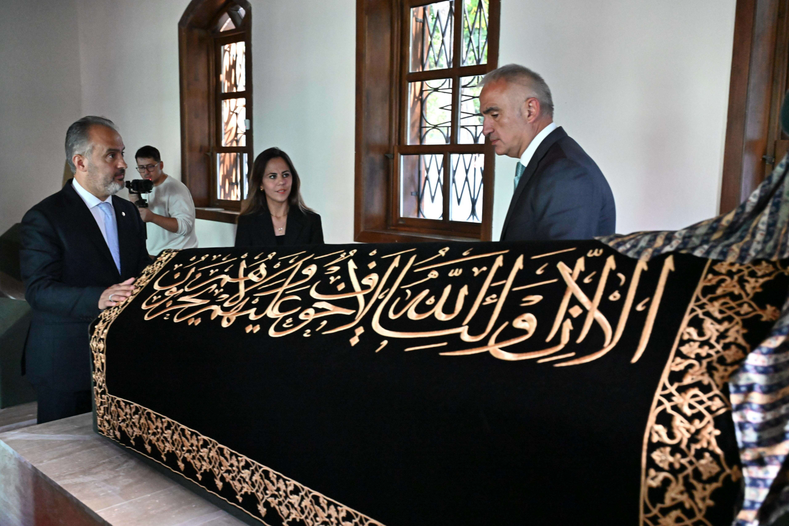 Konuşmaların ardından Bursa Büyükşehir Belediye Başkanı Alinur Aktaş, Bakan Ersoy’a günün anısına ipek tabloya nakşedilmiş Bursa Mevlevihanesi’nin orijinal minyatürünü hediye etti.