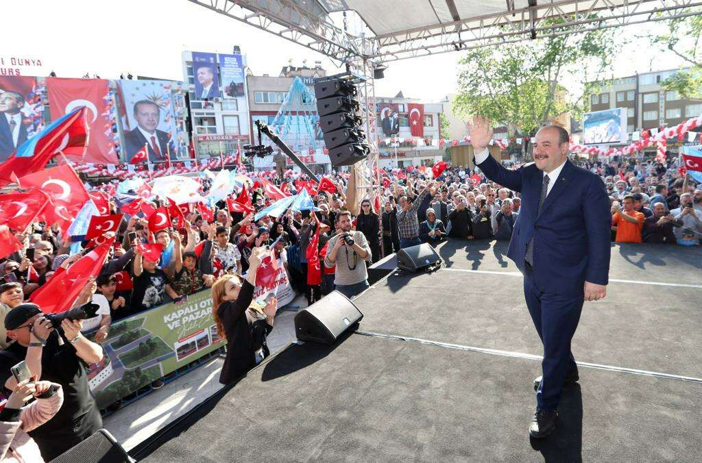 Muhalefetin terör örgütleriyle pazarlık yaptığını iddia eden Bakan Varank, “PKK'nın sözde liderlerinin desteklediği aday hangisi? Kılıçdaroğlu. FETÖ'nün desteklediği aday hangisi? Kılıçdaroğlu. Bakın, PKK'lılar her gün televizyonlara çıkıp ne diyor? Bütün arkadaşlarımızı hapishaneden çıkaracağız diyorlar mı? Kime güvenerek konuşuyorlar? Kılıçdaroğlu'na güvenerek konuşuyorlar. Çünkü o kapalı kapılar ardında kirli pazarlıklar yaptılar. Amerika'da hamburger yerken kirli pazarlıklar yaptılar. Zannediyorlar ki bu millet bu ülkeyi PKK'ya FETÖ'ye teslim eder. Asla etmez. Bizim milletimiz canını verir, terör örgütlerine bu ülkeyi teslim etmez” diye konuştu. Konuşmaların ardından kurdele kesilmesiyle açılışlar gerçekleştirildi.