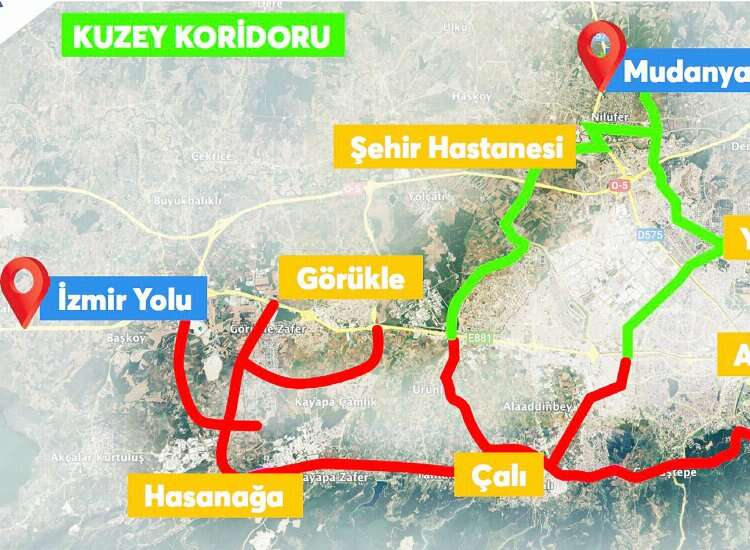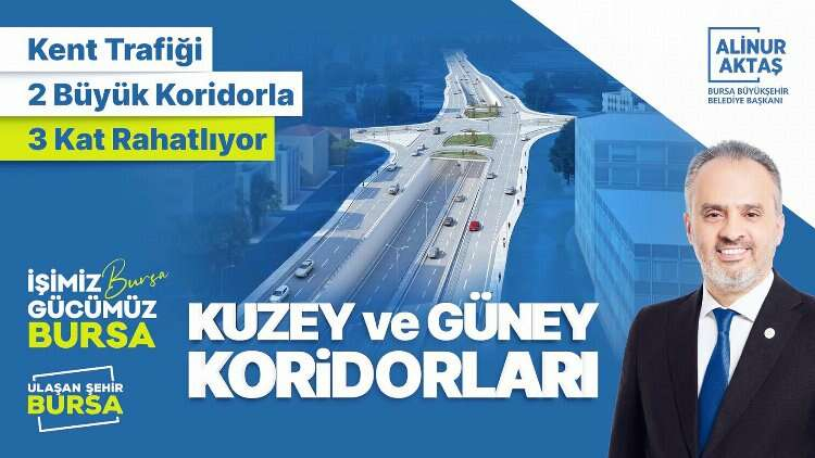 Bursa Büyükşehir Belediye Başkanı Alinur Aktaş, doğu batı hattında Kestel’den başlayıp Acemlerde çatallaşarak Mudanya ve İzmir yönünde iki kola ayrılmış tek bir ana ulaşım aksına sahip şehre ‘Kuzey ve Güney’ olmak üzere iki alternatif koridor oluşturduklarını söyledi. Başkan Aktaş, “Birbirine bağlantı yollarıyla beraber Bursa trafiği artık üçe bölünecek. Trafik yükümüz yaklaşık 3 kat hafiflemiş olacak” dedi.