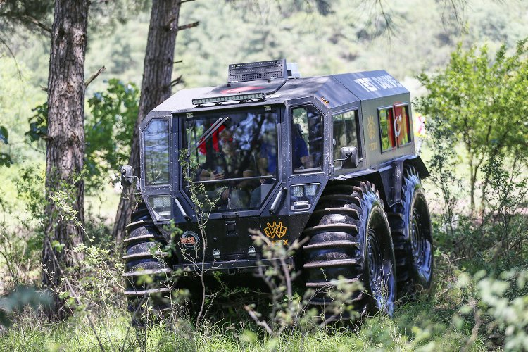 Gemlik ilçesinde bir yıldır üretilen çok amaçlı özel arazi aracı, 12 ülkeye ihraç ediliyor. Üretici firma tarafından zorlu arazi koşulları için tasarlanan 2,8 metre yükseklik, 4 metre uzunluk ve 2,5 metre genişliğe sahip 2,5 tonluk dörtçeker özel arazi aracı, sadece karada değil su yüzeyinde de rahatlıkla ilerleyebiliyor. UTV tipi aracın, su yüzeyinde ve büyük kaya ile tümsekler, devrilen ağaç gövdeleri gibi engellerin bulunduğu arazide test sürüşleri başarıyla tamamlandı. Üretime başlandığında 4 günde bir aracın banttan indirildiği fabrikada artık günlük bir araç üretilebiliyor. İthal malzemelerle üretimine başlanan araç, bir yıl içinde yüzde 50 yerli parçalarla imal edilebilir hale geldi. Başta Kuzey Amerika ülkeleri ABD ve Kanada olmak üzere İtalya, Polonya, İngiltere, Uganda, Madagaskar, Avustralya, Hindistan, Hollanda, Brezilya ve Arjantin'e satış yapan, ihracat odaklı çalışan firma, son dönemde gelen kamu ve özel sektör talepleriyle kısa süre içinde iç pazarda da yer almayı hedefliyor.