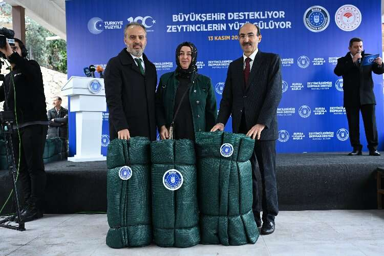 Bursa’daki zeytin üretiminde, kalite ve ürün artışını sağlamak, pazarlama koşullarını iyileştirmek ve üreticimize destek olmak amacıyla ‘Zeytin toplama örtüsü projesi’ni de hayata geçirdiklerini belirten Başkan Aktaş, “Bu kapsamda 250 zeytin üreticimizin her birine 2 adet 6x8 ebatlarında olmak üzere toplamda 500 adet zeytin yaygı desteği sağlıyoruz. Lisanslı depo ve zeytin hali oluşumuyla alakalı müthiş bir proje hazırlıyoruz. Proje yapıldığında bölgeye gerçek manada hizmet edecektir. Gemlik zeytinini tüm Türkiye’ye ve dünyaya anlatmalıyız. Şuan planlama çalışmalarını yapıyoruz. Bittiğinde Gemlik adına çok önemli kazanım olacaktır. Tüm üreticilerimize hayırlı bereketli bir sezon diliyorum” dedi.