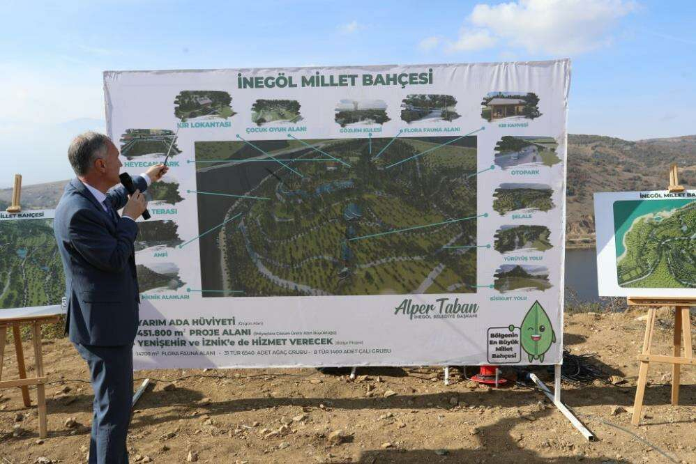 Projenin detaylarını da paylaşan Başkan Taban, şöyle devam etti: “Millet Bahçemiz 451 bin metrekarelik bir alanda projelendirildi. Kayıtlarda bal ormanı olarak geçiyor burası ancak orman vasfını kısmi olarak yitirmiş bir alan. Ancak bu yatırımlar neticesinde bu alan bir orman özelliğine dönüşecek. Burada çam ağaçları ağırlıklı olduğu için yazın da kışın da yeşil görebileceğimiz bir alan. İnegöl’ümüzde Hikmet Şahin Kültür Parkımız var. Aslında orası da bir Millet Bahçesi. Yaklaşık 300 dönümlük düz bir zeminde kurulmuş ve vatandaşlarımızın kullandığı güzel bir mekan. Aynı zamanda vatandaşlarımızın takdir ettiği, memnun kaldığını ifade ettiği bir kullanım alanı. Şehrimizin bugün 300 bin dolayında nüfusa sahip olduğunu düşünür ve mevcut projeksiyon nüfusunun önümüzdeki 15 yıl içerisinde 500 bine geleceğini hesap ettiğimizde bu tür ulaşım alanlarının çoğaltılması ihtiyacı ortaya çıkıyor. Biz de bu düşünceyle 2019 yılında bu projenin planlarını çalıştık. 2020 yılında Orman Bakanlığı ve diğer ilgili kurumlardan onayları, gelişim planlarını çıkardık. 2021 yılında maliyet çalışmaları ve diğer fizibilite çalışmaları yapıldı. Bu yıl Fen İşleri Müdürlüğümüzün yaptığı ihale neticesinde çalışmayı başlatmış olduk. Öncelikle şu anda yüklenici firma yol açma çalışmalarını gerçekleştiriyor.”