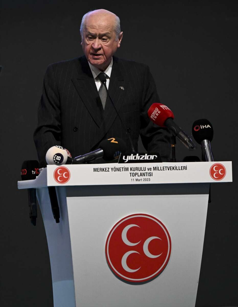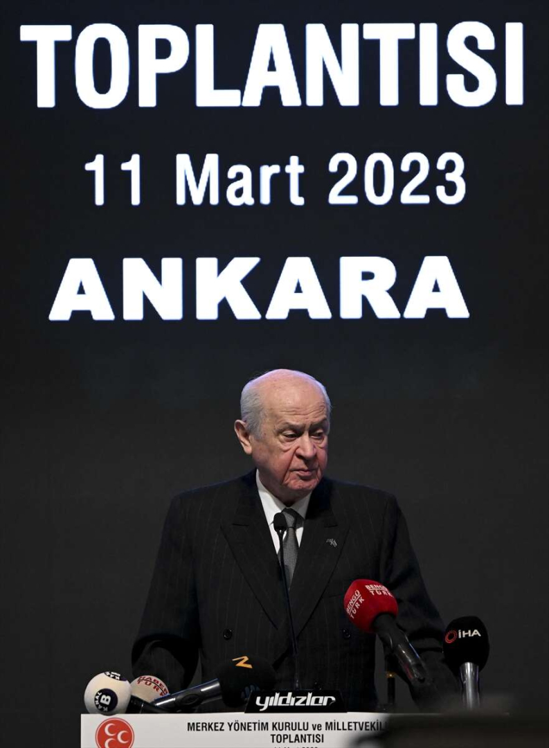 Bahçeli, Merkez Yönetim Kurulu (MYK) ile Merkez Disiplin Kurulu (MDK) üyeleri ve milletvekilleriyle parti genel merkezinde bir araya geldi. Basına kapalı gerçekleşen görüşmenin ardından düzenlediği basın toplantısında, Cumhurbaşkanlığı ve Milletvekilliği Genel Seçimleri öncesinde, son toplantılarını yaptıklarını belirten Bahçeli, deprem felaketinin derin etkileri, yapılan çalışmalar, alınan tedbirler, bunun yanında 14 Mayıs seçimleri ve diğer siyasi gelişmelerle ilgili geniş değerlendirme imkanı bulduklarını bildirdi Milliyetçi Hareket Partisi ve Cumhur İttifakı 14 Mayıs Cumhurbaşkanlığı ve Milletvekilliği Genel Seçimlerine tam olarak hazırdır, başarmaya da kararlıdır." diyen Bahçeli, şöyle devam etti: “Bizim başarımız demek mazlumların umudu demektir. Bizim başarmamız demek ülkemizin yükselişi demektir. MHP ve Cumhur İttifakı milli bağımsızlığımızın gücü, varoluşumuzun güvencesi, milli birlik ve kardeşliğimizin güvenliğidir. Cumhurbaşkanlığı Hükümet Sistemi Türkiye'nin gücüne güç eklemiş hükümranlık beratı, cumhuriyetin yeni yüzyılının ilerleyiş ve yükseliş ilhamı ve iddiasıdır. Türkiye'miz siyasi ve stratejik mahiyeti tarihi nitelikte olan, aynı zamanda sürekli akış halinde bulunan bir sürecin, bir güzergahın, bir kulvarın tam ortasındadır. Bir yanda Cumhuriyet'in 100'üncü yıl dönümüne adım adım yaklaşırken, diğer yanda bu yıl dönümünü demokrasinin imkanlarıyla milletimizin kutlu iradesiyle perçinlemenin, kudretli bir geleceğe taşımanın çabasındayız. Türk ve Türkiye Yüzyılı vizyonu bu çabanın semeresi ve sonucu olacaktır, kaldı ki inancımız ve ümidimiz de budur."