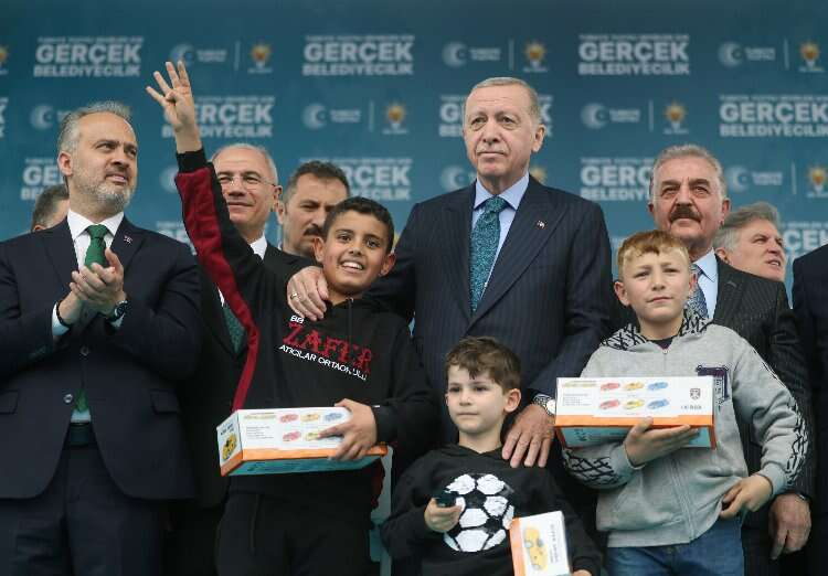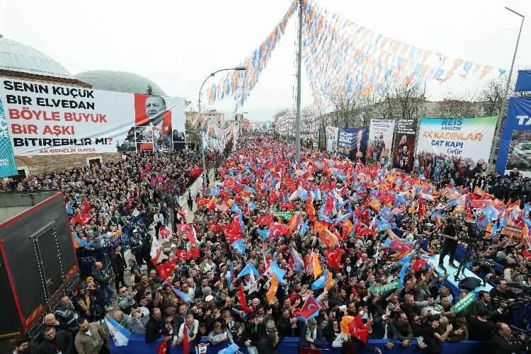 Cumhurbaşkanı Recep Tayyip Erdoğan, Bursa Gökdere Meydanı’nda düzenlenen mitingde alanı hınca hınç dolduran binlerce Bursalıya seslendi. “Ulu çınarlarca tarihim sende. Bahtım, bereketim, tarihim sende. Üç kıtada hüküm sürdüm sayende. Tende can, gönülde sevdamsın Bursa. Cihanda en güzel rüyamsın Bursa” dizeleriyle konuşmasına başlayan Cumhurbaşkanı Recep Tayyip Erdoğan, “Bursa nasıl Balkanlardan Kafkaslara başı dara düşen her kardeşimize kucak açmışsa, biz de bu coğrafyalarla bağlarımızı daima güçlendiriyoruz” diye konuştu.