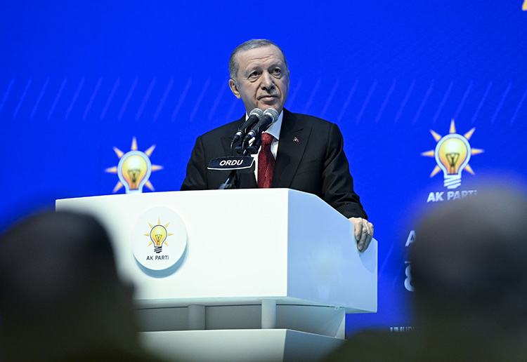 Erdoğan, salonda bulunan partililere ve Ordululara ahde vefası için teşekkür eden Erdoğan, "Bizleri gönül dünyasında ağırlayan muhabbetiyle sarıp sarmalayan her bir Ordulu kardeşime şükranlarımı sunuyorum. İlk olarak Samsun'daki İl Kongremizi başarıyla gerçekleştirdik. Şimdi de Ordu'daki kongremizi yine coşkuyla, heyecanla icra ediyoruz." ifadelerini kullandı. Kendileri için her görevin aynı zamanda ülke ve millet için tutulan bir nöbet olduğuna dikkati çeken Erdoğan, şunları söyledi: "AK Parti içinde ene yoktur, enaniyet yoktur, ben ve bencillik yoktur, biz vardır. Bu kadronun mensupları arasında makam ihtirası değil, millete hizmet aşkı memlekete hizmet tutkusu vardır. Muhalefet partileri rant ve koltuk hırsıyla her gün kendi içlerinde kavga ederken biz sadece ülkemize ve milletimize hizmetle meşgulüz. Gözümüz milletimizden başka kimseyi görmüyor. Kalbimiz sadece ve sadece Türkiye için çarpıyor. Büyük ve güçlü Türkiye hayalinin peşinden koşuyoruz. Ülkeye ve millete hizmet nöbetini devreden arkadaşlarıma emeklerinden dolayı teşekkür ediyorum. Sancağı devralan yol ve dava arkadaşlarıma Rabbimden muvaffakiyetler diliyorum."