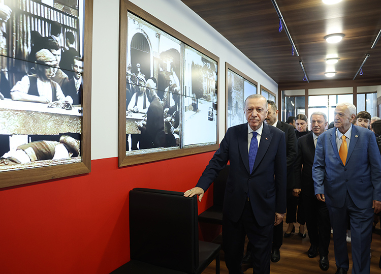 Cumhurbaşkanı Erdoğan, "Milletlerin kıymeti, zenginliği, derinliği, tarih ve medeniyete yaptıkları katkılar kadar sinesinden çıkardıkları yazarlarla, şairlerle, ilim ve tefekkür insanlarıyla mizana vurulur. Eserleriyle, düşünceleriyle, geleceğe bıraktıkları izlerle bu insanlar, aynı zamanda 'necip olma' hasletini yani asaleti de bünyelerinde taşır. Bu bakımdan asalet, yalnızca milletlere has bir vasıf değildir." dedi. Cumhurbaşkanı Erdoğan konuşmasında, sergiyi ziyaret eden vatandaşların hem Necip Fazıl Kısakürek hem de Mehmet Kısakürek'in hatıralarını ileri teknolojinin sunduğu imkanlarla kendi seslerinden dinleyebileceklerini, Kısakürek'e yöneltecekleri soruların yine Kısakürek'in kendi sesi ve kendine has üslubuyla cevaplanacağını söyledi. Konuşmasında Kısakürek'in, "Ruhumu eritip de kalıpta dondurmuşlar, onu İstanbul diye toprağa kondurmuşlar." dizelerine yer veren Erdoğan, "Bu mısraları İstanbul'a, zihnimize, kalbimize nakşeden Üstadın ve kıymetli oğullarının ruhu inşallah bu sergiyle bir kez daha şad-kam olacak diye ümit ediyorum." diye konuştu.