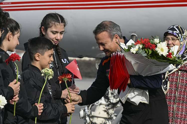 Türkiye'nin ilk astronotu Alper Gezeravcı, Uluslararası Uzay İstasyonu'nda (ISS) gerçekleştirdiği her bir deneyi temsil eden kendisini karşılayan gençlere birer bayrak teslim ettiğini belirterek, "Bundan sonra başlayan kutlu yolculuğumuzun bayrak değişimini gerçekleştirmiş olduk." dedi. ISS'deki görevini tamamlayarak yurda dönen Gezeravcı, Sanayi ve Teknoloji Bakanı Mehmet Fatih Kacır ile Esenboğa Havalimanı'nda basın toplantısı düzenledi. Burada konuşan Gezeravcı, Türkiye'ye adımını attığı ilk andan itibaren insanların gülümseyen yüzleri ve memleketin sıcak kucaklamasıyla karşılaştığı için son derece mutlu olduğunu dile getirdi. Bunun, en çok özlediği şeylerden bir tanesi olduğunu aktaran Gezeravcı, "Maneviyatı yüksek olan bir ülkenin içten, samimi insanlarıyla, Türk vatandaşlarımızla tekrar bir araya gelmek, kavuşmak bu yolculuğun en güzel sonlanan kısmıydı." diye konuştu.