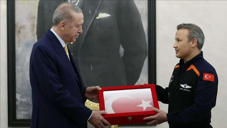 Cumhurbaşkanı Recep Tayyip Erdoğan, Türkiye'nin insanlı ilk uzay misyonunu başarıyla tamamlayarak yurda dönen astronot Alper Gezeravcı'yı kabul etti. Cumhurbaşkanı Erdoğan'ın, İstanbul'dan Ankara'ya gelişinde Esenboğa Havalimanı'nda gerçekleşen kabulde, Gezeravcı'ya ailesi de eşlik etti. Kabulde, Gezeravcı, Uluslararası Uzay İstasyonu'nda (ISS) geçirdiği 18 gün boyunca yanında bulunan Türk bayrağını ve "Türkiye'nin insanlı ilk uzay misyonu" yazan peçi Cumhurbaşkanı Erdoğan'a takdim etti. Erdoğan da Gezeravcı'ya saat hediye etti. Kabulde, Cumhurbaşkanı Erdoğan'ın eşi Emine Erdoğan ile Sanayi ve Teknoloji Bakanı Mehmet Fatih Kacır da yer aldı.