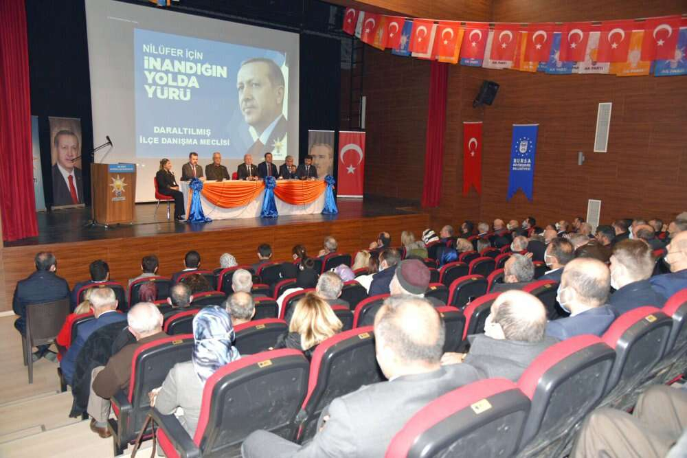 AK Parti Nilüfer Teşkilatı, daraltılmış ilçe danışma meclisi toplantısında biraraya geldi. Toplantıda konuşan AK Parti Bursa İl Başkanı Davut Gürkan, “Büyükşehir Belediyemizin ilçemize kattığı değerde görüldüğü gibi Nilüfer’e yakışan hizmetler ancak AK Parti belediyecilik anlayışından çıkacaktır” dedi.