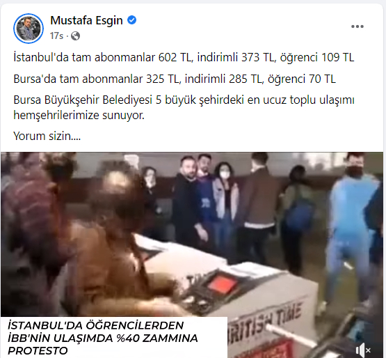 İstanbul Büyükşehir Belediye Meclisi hemen hemen her toplantısına CHP tarafından getirilen zam taleplerine karşı halkı korumaya devam ederken, İBB Başkanı Ekrem İmamoğlu’nun “Her şey çok güzel olacak” sloganı da tarihteki yerini aldı. İstanbul’da her şey güzel olacaktı ancak her şey hemen yanı başında AK Parti yönetimindeki Bursa’dan çok daha pahalı oldu. Hacim ve bütçe olarak kendisinden daha küçük olmasına rağmen Bursa’nın gerisinde kalan İstanbul Büyükşehir Belediyesi, artık tüm kesimlerin tepkilerini üzerine çekiyor. Son ulaşım zammından sonra özellikle gençler metro istasyonlarında protesto eylemleri düzenlerken, bir grup solcu öğrenciler de toplanıp protesto yürüyüşü yaptı.