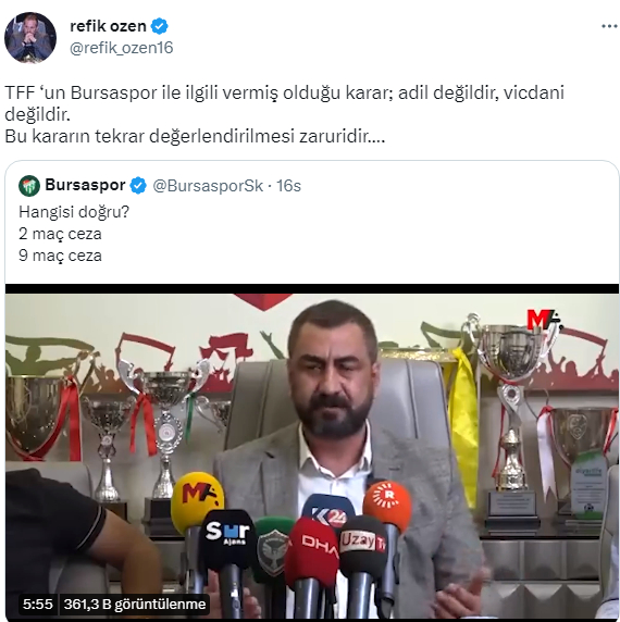 PFDK’nın Bursaspor'a Amedspor maçı nedeniyle verdiği ağır ceza Bursa’yı ayağa kaldırdı! Adaletiniz batsın!