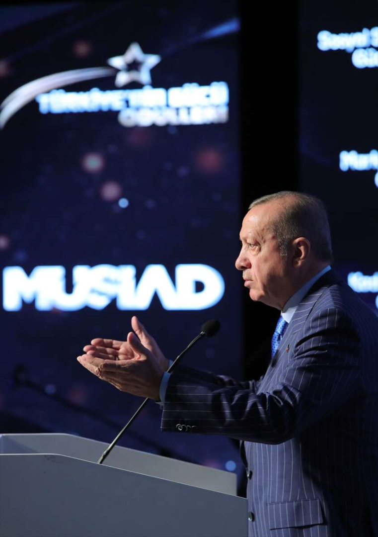 MÜSİAD'ın güçlenmesi için samimiyetle çaba harcayan önceki başkanlarına, yönetim kurulu üyelerine, temsilcilerine ayrıca şükranlarını sunan Cumhurbaşkanı Erdoğan, şunları söyledi: "Elbette 32 yıllık çileli ve zorlu yolculukta pek çok kardeşimizi ebediyete uğurladık. Bu ülkeden kazandığını yine bu ülke için harcama prensibiyle hareket eden MÜSİAD'ın müteveffa üyelerini bir kez daha rahmetle yad ediyorum. Rabb'im hepsinden razı olsun. Mekanlarını cennet eylesin. MÜSİAD'ın doğuşuna değerli fikirleriyle öncülük eden Prof. Dr. Necmettin Erbakan Hoca'mızı da burada tazimle anıyor, Rabb'imden hocamıza rahmet ve mağfiret diliyorum. MÜSİAD, medeniyet değerlerimizden neşvünema bulan anlayışıyla iş adamı örgütlerimiz içinde şüphesiz özgün bir konuma sahiptir. Geride bıraktığımız 32 yıllık zaman zarfında Türkiye'nin karşılaştığı tüm kritik dönemeçlerde MÜSİAD, bu duruşunu açıkça ortaya koymuştur. Şöyle bir hafızamızı yokladığımızda 28 Şubat'ın sermayenin renklere ayrıldığı karanlık günlerinden vesayetin yeniden hortlatılma çabalarına, Cumhuriyet mitinglerinden Gezi olaylarındaki sokak terörüne, 17-25 Aralık girişiminden 15 Temmuz kanlı darbe teşebbüsüne, Türkiye'nin ekonomik ve siyasi bağımsızlığını hedef alan saldırılara kadar her kritik dönemde MÜSİAD, daima milletin ve milli iradenin yanında saf tutmuştur."