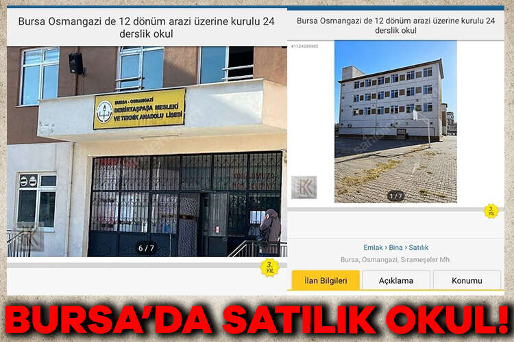 Bursa'da "satılık devlet okulu" iddiaları gündeme bomba gibi düşerken, konuyu gündeme getiren Eğitim-İş Sendikası’nın bilgileri eksik paylaştığı ortaya çıktı. Kamuyonuna yansıyan haberlerin ardından Bursa Valiliği, eğitim kurumlarına ilişkin bazı basın yayın kuruluşlarındaki haberler ile sosyal medya paylaşımlarına yönelik açıklama yapıldı. Açıklamada, Osmangazi’ye bağlı Sırameşeler Mahallesi'nde imar planında lise binası alanı olan, mülkiyeti 4 kişiye ait taşınmaz üzerine maliklerin vekili tarafından yapılan iki adet 24 derslikli lise binasının Milli Eğitim Bakanlığı’nca 8 yıllığına kiralandığı bildirildi.