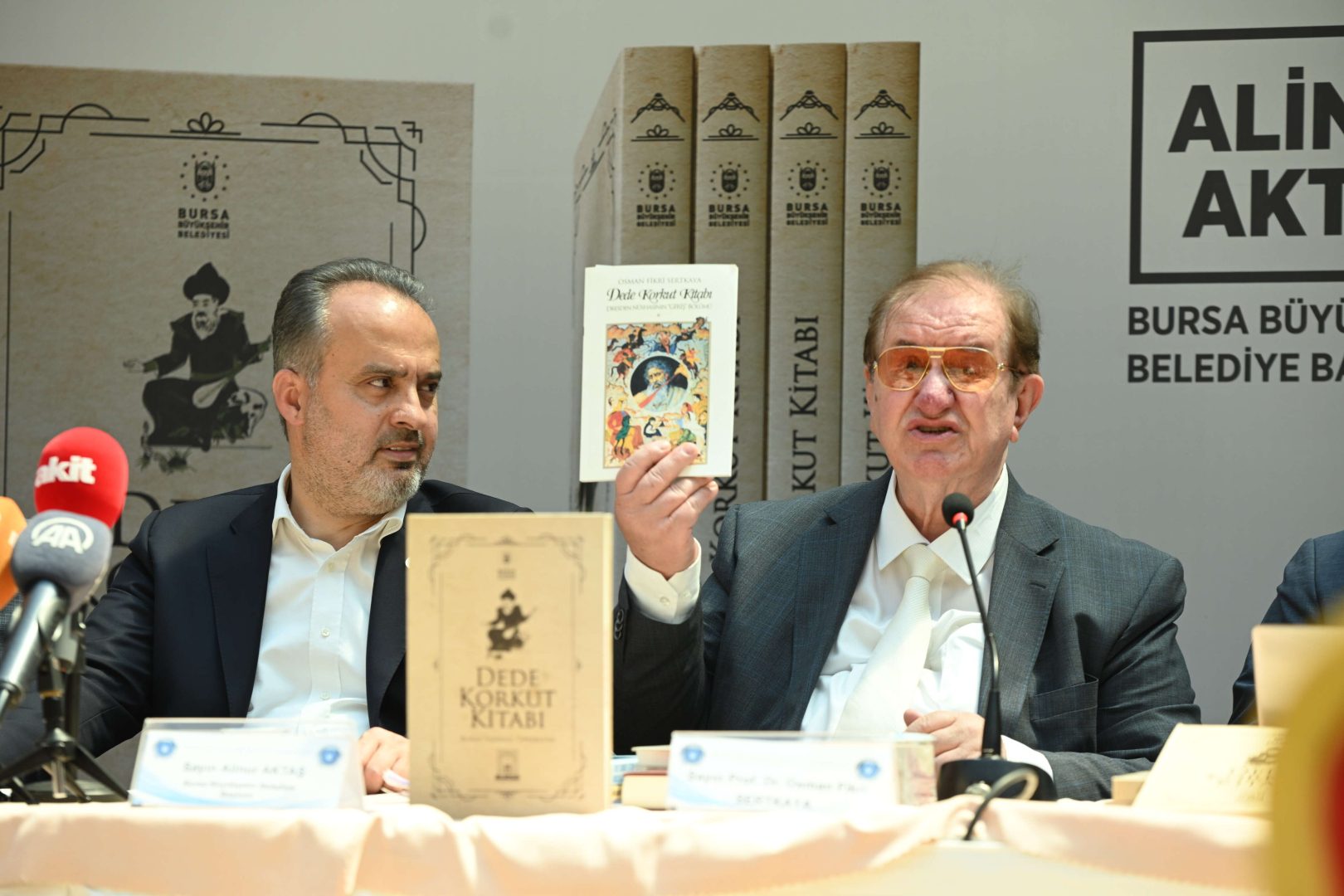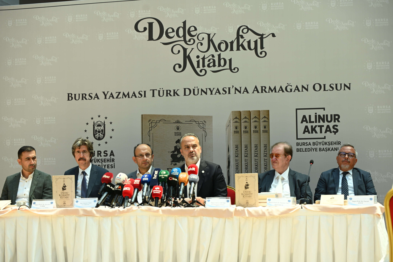 Eserin tanıtım toplantısında konuşan Bursa Büyükşehir Belediye Başkanı Alinur Aktaş, Dede Korkut Hikâyelerinin, Türk milletinin töresini, inancını, ahlâkını ve kahramanlıklarını anlatan dünya kültür mirası için de değeri yüksek bir eser olduğunu hatırlattı. Oğuz Türklerinin destanî hayatını anlatan Dede Korkut Hikâyeleri’nin bugüne kadar sadece Dresden, Vatikan, Türk Tarih Kurumu ve Günbed nüshalarının bilindiğini kaydeden Başkan Aktaş, “Ancak bu bilgi 2022 yılında değişti. Kadim tarihe ve köklü kültüre sahip Bursa’mız, hâlâ nice hazinelere gebe bir şehir. Dede Korkut Hikâyeleri’nin yeni bir nüshasının Büyükşehir Belediye’mizin Muradiye Kur’an ve El Yazmaları Müzesi’nde yer aldığından kamuoyu haberdar olmuştu. Her eserin kaderi var: Asırlardır elden ele, köyden köye dolaşan yazma, nihayetinde bizim müzemize intikal etti. Eserin tıpkıbasımını hazırladık ve bugün de ilim âlemine armağan ediyoruz. An itibariyle esere, bursa.bel.tr adresimizin yayınlar kısmından da dijital olarak ulaşabilecek. Bilim insanlarımız ve araştırmacılar bu yazma üzerine yaptıkları çalışmaları iletirlerse biz de “Dede Korkut Kitabı - Bursa Yazması Araştırmaları” başlığı altında toplayacağız. Bundan sonrası eser üzerine çalışma yapacak, tez hazırlayacak, makale yazacak değerli ilim erbabına düşüyor. Bu emanetin korunmasında, bağışlanmasında, keşfedilmesinde ve hazırlanmasında emeği geçenlere teşekkür ediyorum. “Dede Korkut Kitabı Bursa Yazması” Türk dünyası için kutlu olsun” diye konuştu.