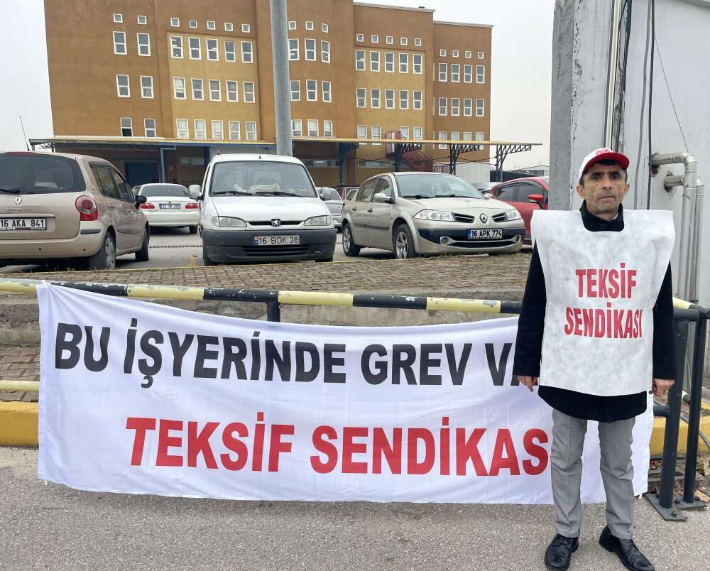 TEKSİF Bursa Pilot Şube Başkanı İsmail Kutur, gazetecilere, işveren temsilcileriyle ağustos ayından bu yana toplu sözleşme için görüştüklerini söyledi. Görüşmelerde bazı maddelerde işverenle anlaşır gibi olduklarını belirten Kutur, "En son bizim istediğimiz yüzde 25'lik zam teklifine işveren yüzde 5 teklif etti. Bunda da anlaşamadık ve kanuni hakkımız olan grev kararı aldık." dedi. Kutur, 26 yıldır çalıştığı bu firmada ilk kez greve gidildiğini ifade etti. Sonuç alıncaya kadar grevi sürdüreceklerini anlatan Kutur, "Hiç tasvip etmediğimiz bir şey ama sonunda işçiler için bir toplu sözleşme yapıyorsun. Toplu sözleşmede istenilenle verilen arasında uçurum olunca biz de mecburen kanuni hakkımızı kullanmış olduk." dedi.