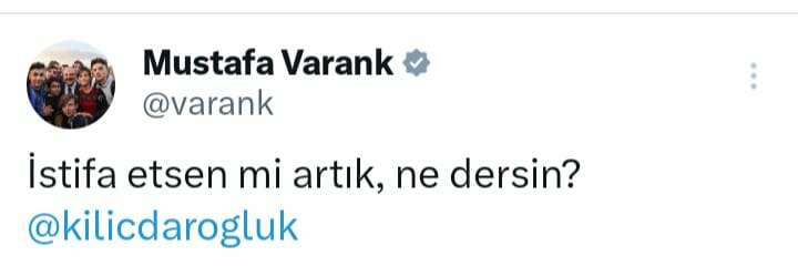 Sanayi ve Teknoloji Bakanı Mustafa Varank, CHP Genel Başkanı Kemal Kılıçdaroğlu’nu etiketleyerek yaptığı paylaşımda, “İstifa etsen mi artık, ne dersin?” ifadelerine yer verdi.