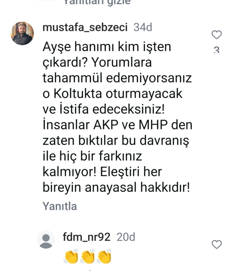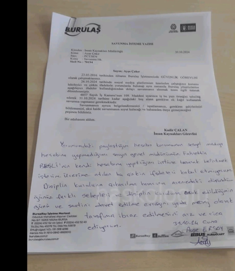 Bu yorumun ardından Burulaş tarafından ifadeye çağrılan Ayşe Çakır isimli güvenlik personeli, ifadesi alındıktan sonra işine son verildiği ileri sürüldü. Konuyla ilgili Burulaş’tan bir açıklama gelmezken, sadece eleştirdiği için bir çalışanın işine son verilmesi sosyal medyada büyük tepki çekti.