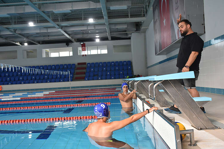 Kulübün sutopu takımına giren 23 yaşındaki Batuhan ile 17 yaşındaki Yiğit, Ortahisar Belediyesi Kapalı Yüzme Havuzu'nda çalışmalarını sürdürüyor.