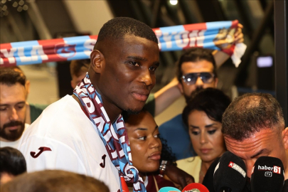 Basın mensuplarının sorularını yanıtlayan Nijeryalı oyuncu, bordo-mavili taraftarlara üçlü çektirdikten sonra kulüp aracıyla havalimanından ayrıldı.
